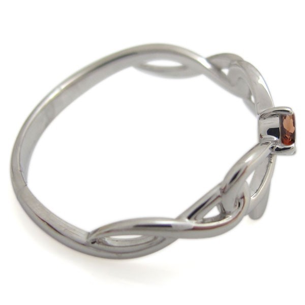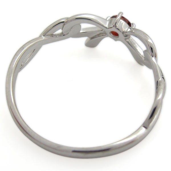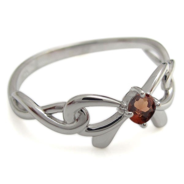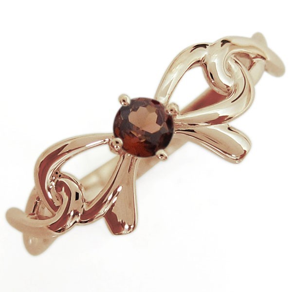 1月誕生石ガーネットを使用した10金製のリボン&インフィニティ(無限)モチーフリング(指輪)です。