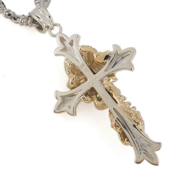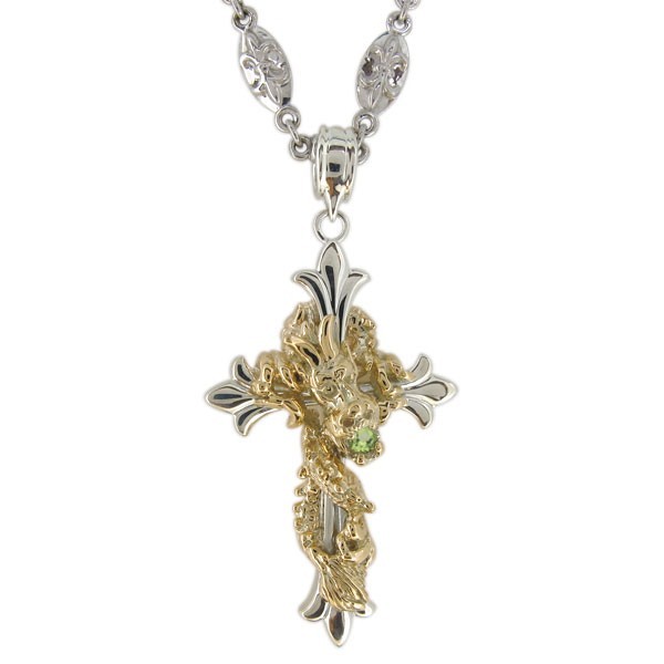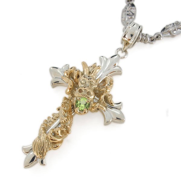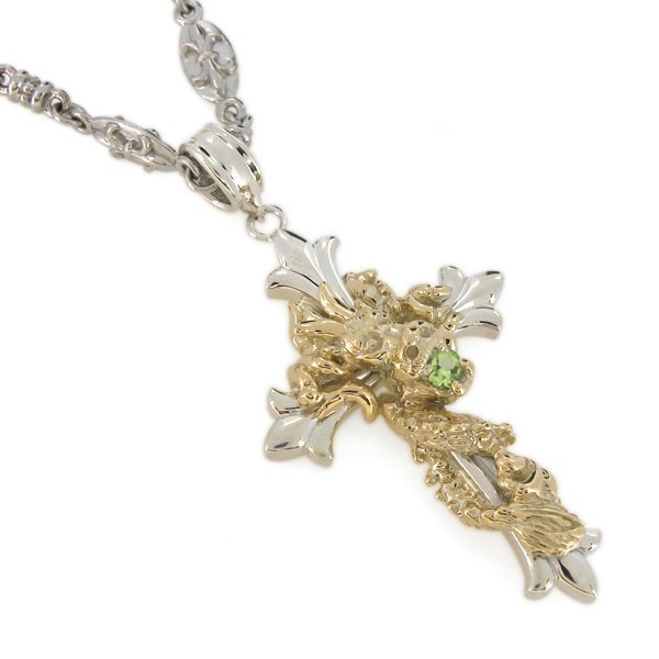 メンズネックレス プラチナ 18金 コンビ クロス ペリドット 8月誕生石