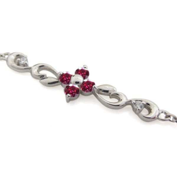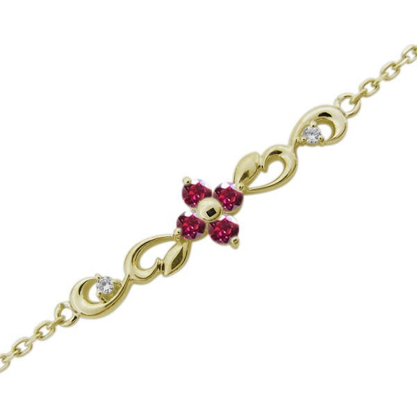 7月誕生石ルビーを使用した18金製の唐草(アラベスク)&花(フラワー)モチーフブレスレットです。