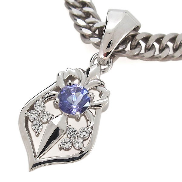 12月誕生石タンザナイトを使用したシルバー製の、百合の紋章デザインメンズペンダントヘッドです。