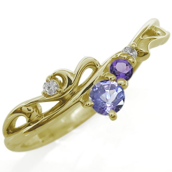 ■石名:主石 (大)タンザナイト(約 3.0mm/天然石使用)(小)誕生石12石から選択可(約2.0mm)脇石 ダイヤモンド(2石合計で約 0.024ct/天然石使用)