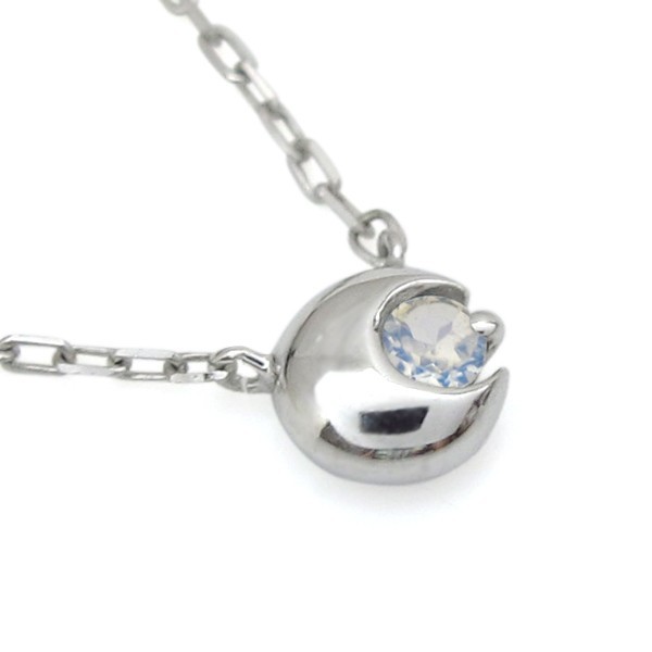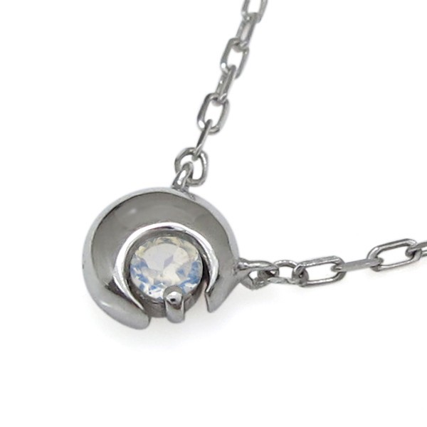 6月誕生石ロイヤルブルームーンストーンを一粒使用した、三日月(ムーン)をモチーフにした、プラチナ製プチネックレスペンダントです。