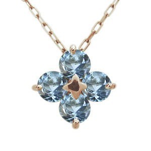 3月誕生石アクアマリンサンタマリアを使用した18金製の、フラワー(花)モチーフネックレス(ペンダント)です。