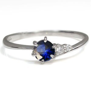 ■石名:主石 サファイア(約 4.0mm/天然石使用)脇石 ダイヤモンド(2石合計0.03ct/天然石使用)