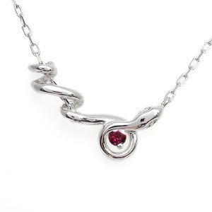 7月誕生石ルビーを一粒使用したプラチナ製の、スネーク(蛇)モチーフ・ネックレスです。