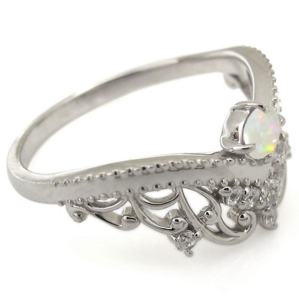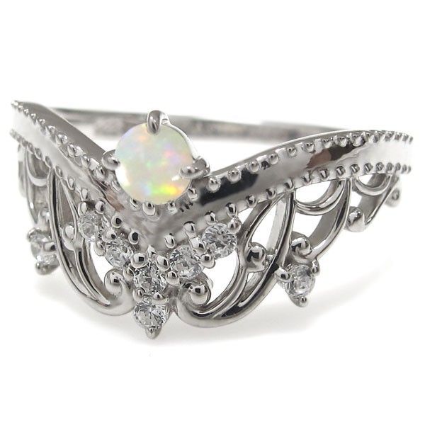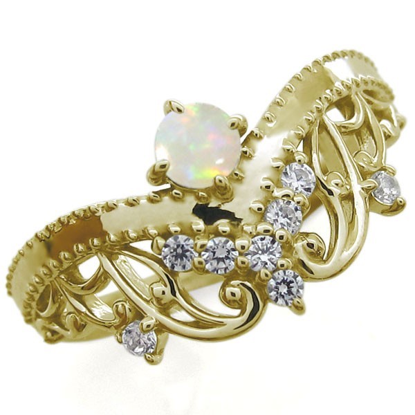 10月誕生石オパールを使用した18金製の王冠&唐草モチーフアンティークデザインリング(指輪)です。