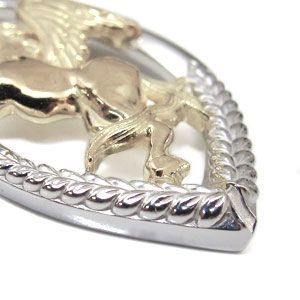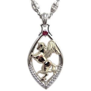 勇壮なペガサスに7月誕生石ルビーを一粒使用した、シルバー&K10イエローゴールド製のホース(馬)デザインメンズネックレスコンビペンダントです。