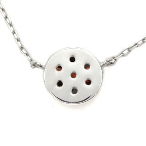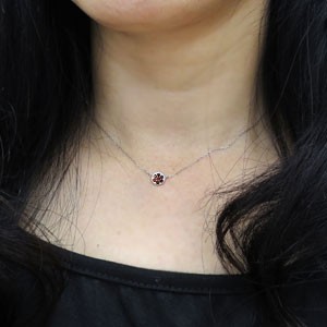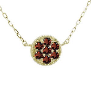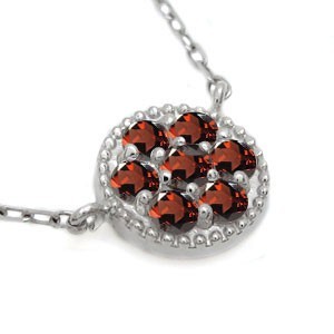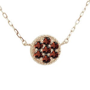 1月誕生石ガーネットを使用したミル打ちデザインの18金製パヴェネックレスです。