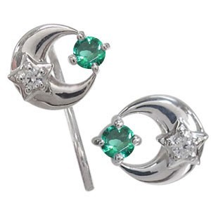 星 エメラルド 月 ピアス 無くさない プラチナ ピアス クリスマス ポイント消化