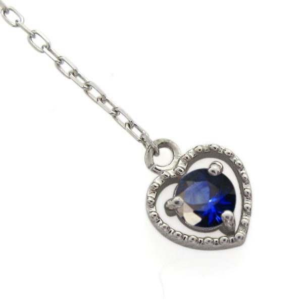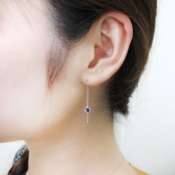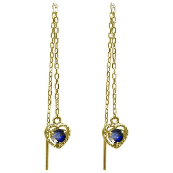 サファイア ピアス ハート ロングピアス ミル打ち 10金ピアス