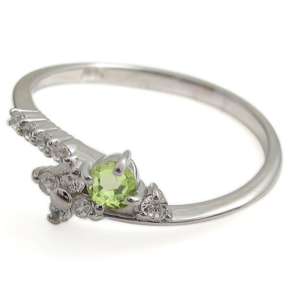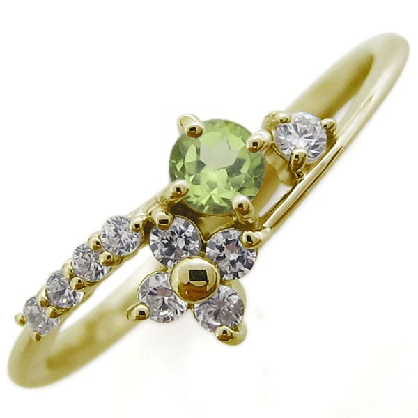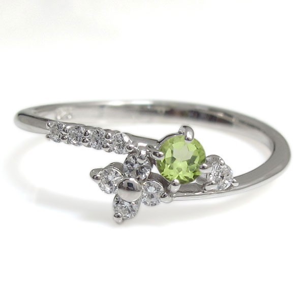 ■石名:主石 ペリドット(約 3.0mm/天然石使用)脇石 ダイヤモンド(9石合計で約 0.14ct/天然石使用)