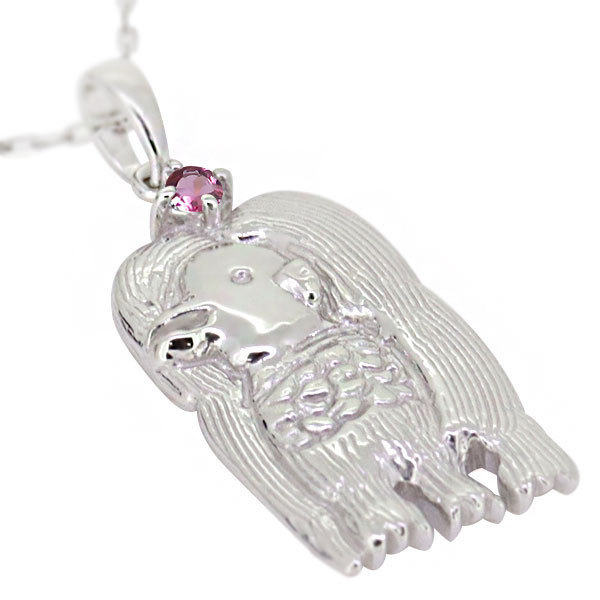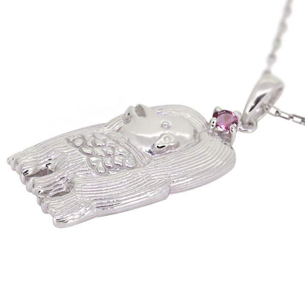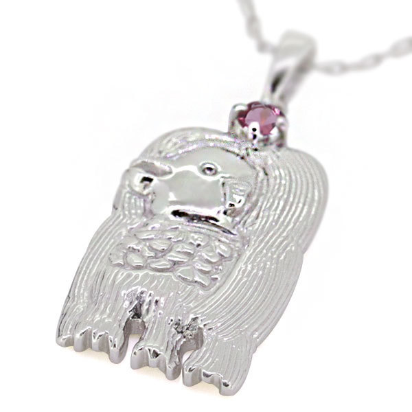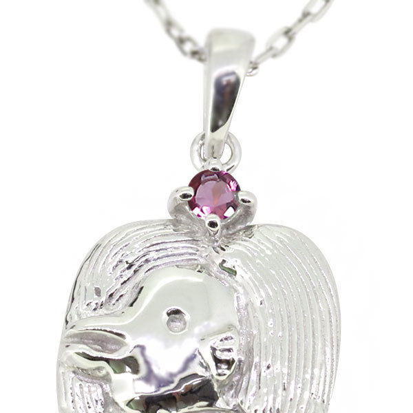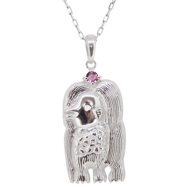 10月誕生石ピンクトルマリンを一粒使用した、シルバー製のアマビエネックレス(ペンダント)です。