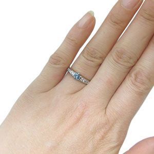 ■石名:主石 アクアマリンサンタマリア(約 4.0mm/天然石使用)脇石 ダイヤモンド(10石合計で約 0.2ct/天然石使用)