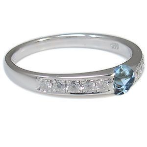 アクアマリンサンタマリア リング 指輪 3月誕生石 10金3月誕生石アクアマリンサンタマリアを一粒使用した、10金製のハーフエタニティリング(指輪)です。