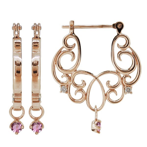 ピアス レディース ペア 18金 フープ ピンク ゴールド 揺れる 人気
