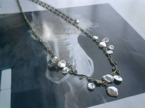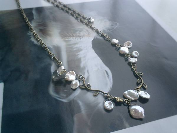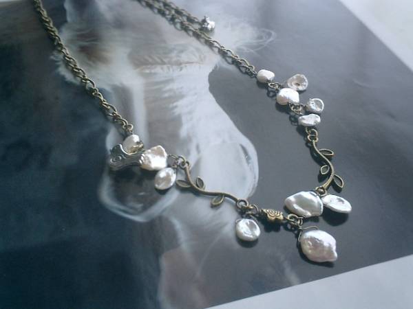 仏蘭西映画の恋人・・シリーズです♪パリの小鳥さん・・繊細な芥子パールと小鳥さんのネックレスです♪8ミリから11ミリ位までの大きさ違いの芥子パールにクラシカルな葉っぱのチャームや小鳥さんやお花のチャームを合わせてアンティークな表情です♪長さは全長65センチ位で調節自由です♪チョーカー風に着けられても可愛いです♪お揃いのブレスレットやピアスも出品しています♪シンプルで長く着けていただけるデザインを考えて作りました♪♪ハンドメイドをご理解頂いてノークレーム、ノーリターンでお願いします。