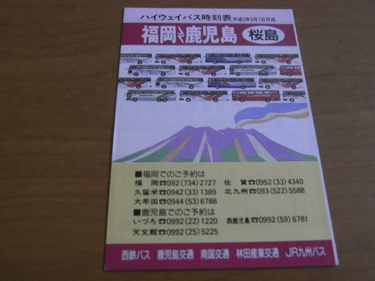 ハイウェイバス時刻表 平成3年9月1日作成 福岡-鹿児島 桜島 西鉄バス 鹿児島交通 南国交通 林田産業交通 JR九州バス