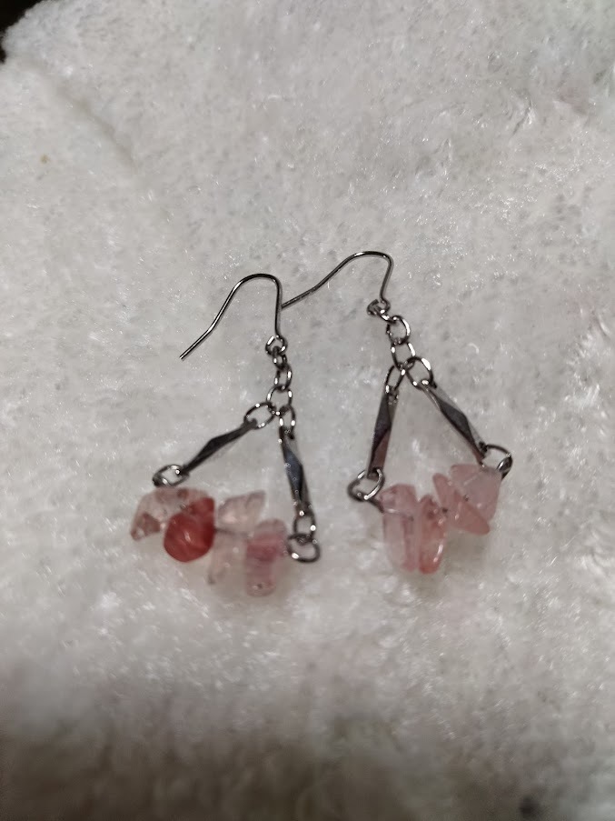 ★てづくりBOX.polaris★チェリークオーツ●ゆらゆらピアス★手作り品★ | |