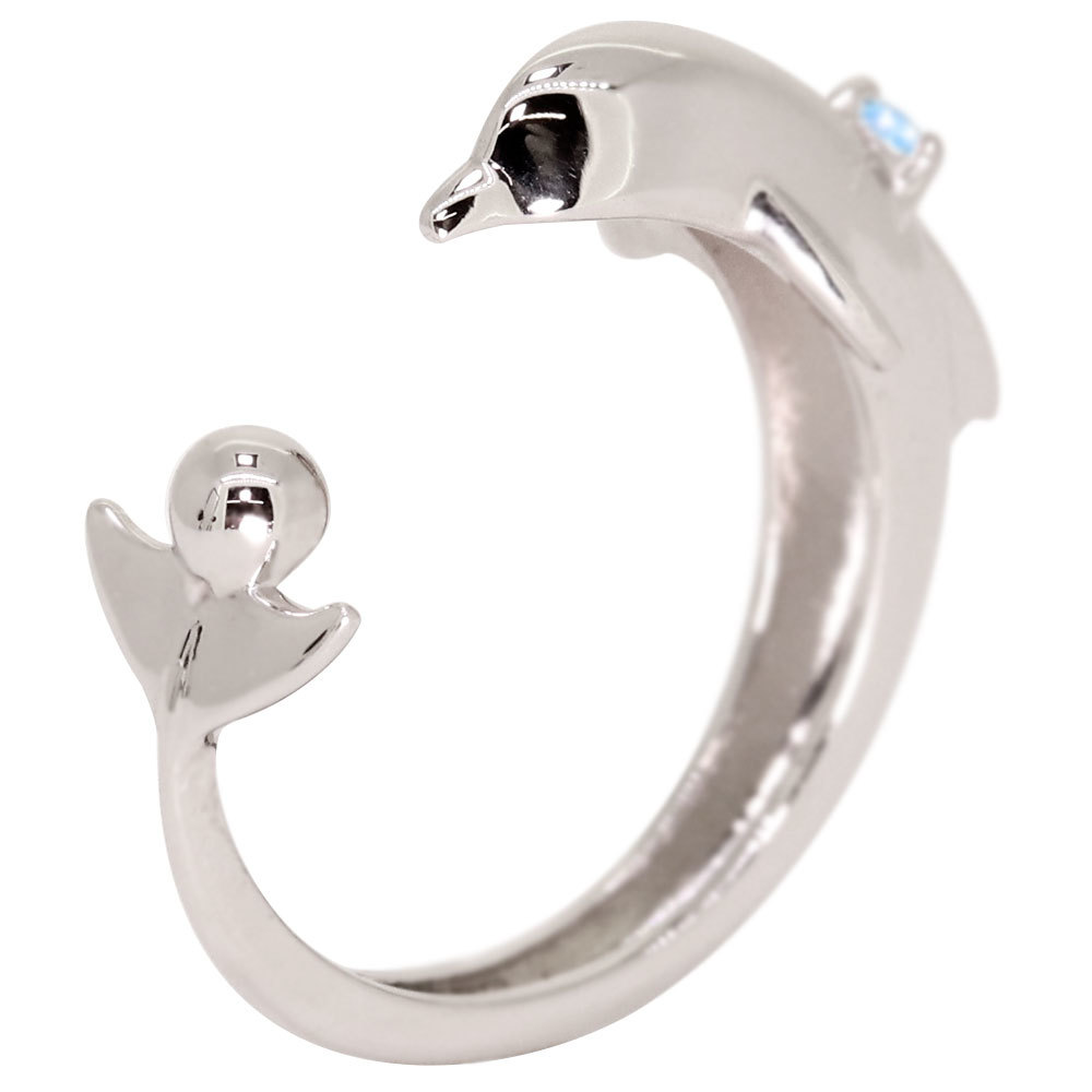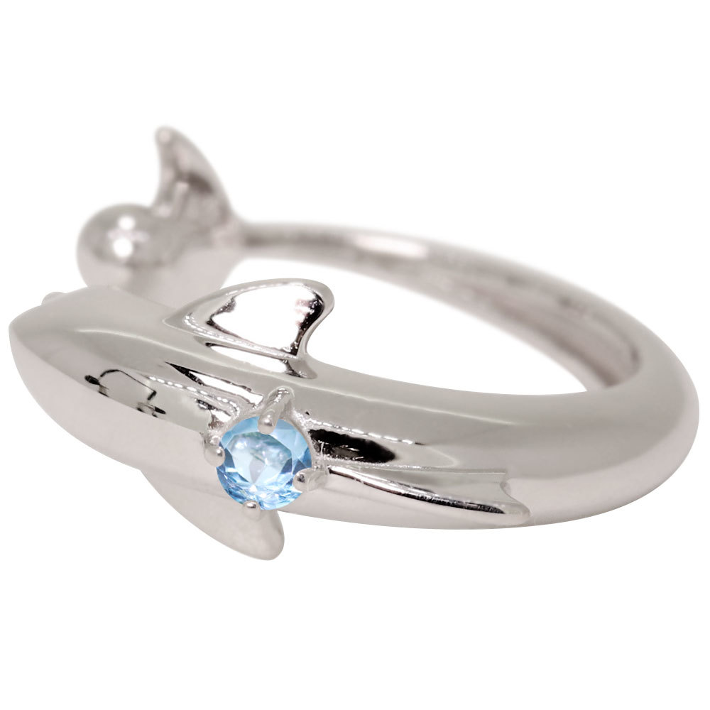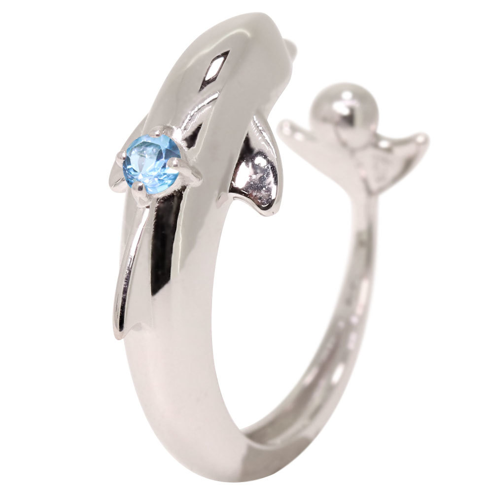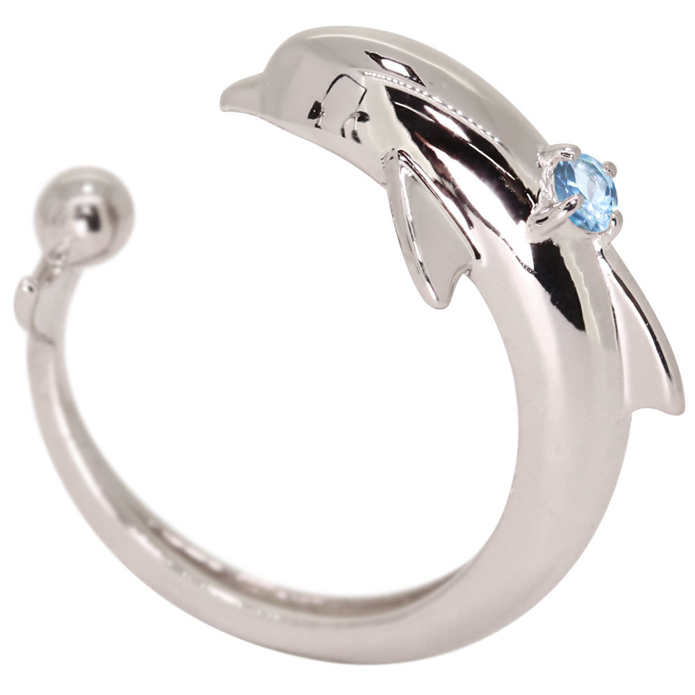 11月誕生石ブルートパーズを使用したプラチナ製の、イルカ(ドルフィン)モチーフのイヤーカフです。
