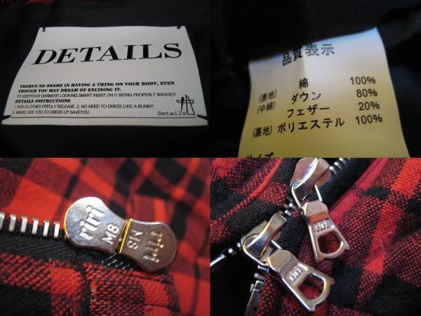新品 DETAILS ディテイルス レッド チェック ダウンベスト