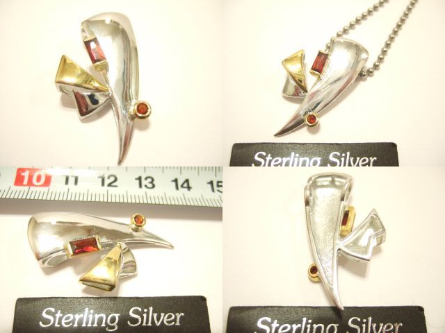 商品名 | 横浜最新 シルバーSILVER925銀♪魅惑のツートントライアングルペンダント ガーネット風 メンズレディース | ||||