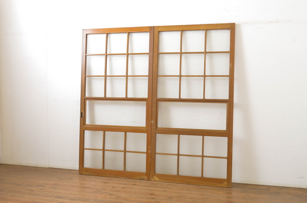 アンティーク建具 モール・ダイヤガラス入り レトロなガラス戸2枚セット(引き戸、ガラス帯戸)(R-064129)です。