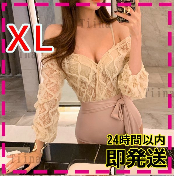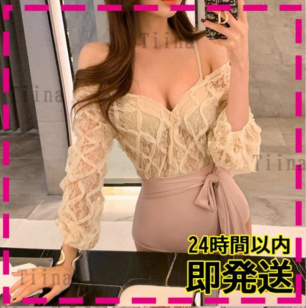女神 感 のある シフォン と レース の デザイン が 可愛い ワンピース タイプの 水着 です。