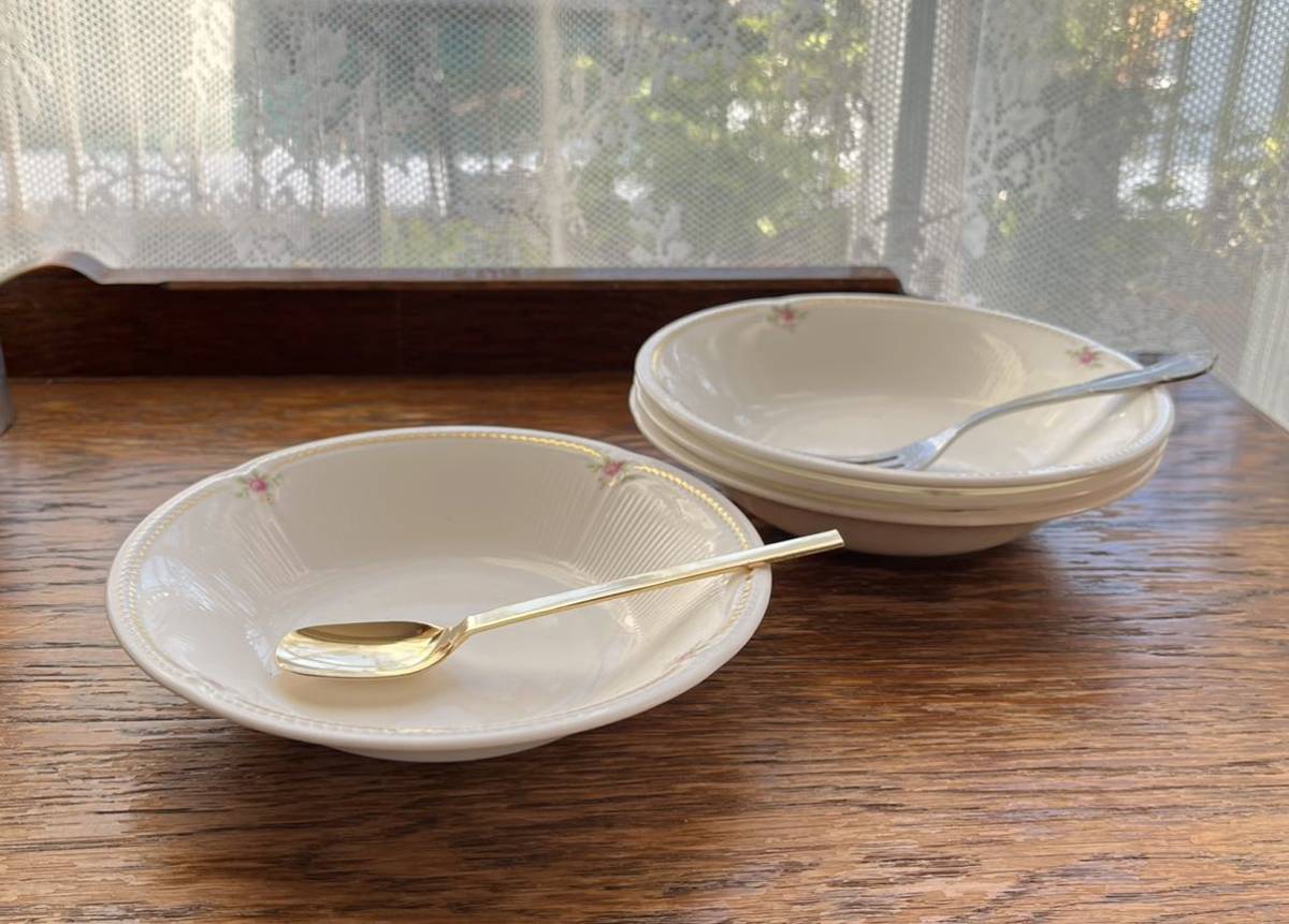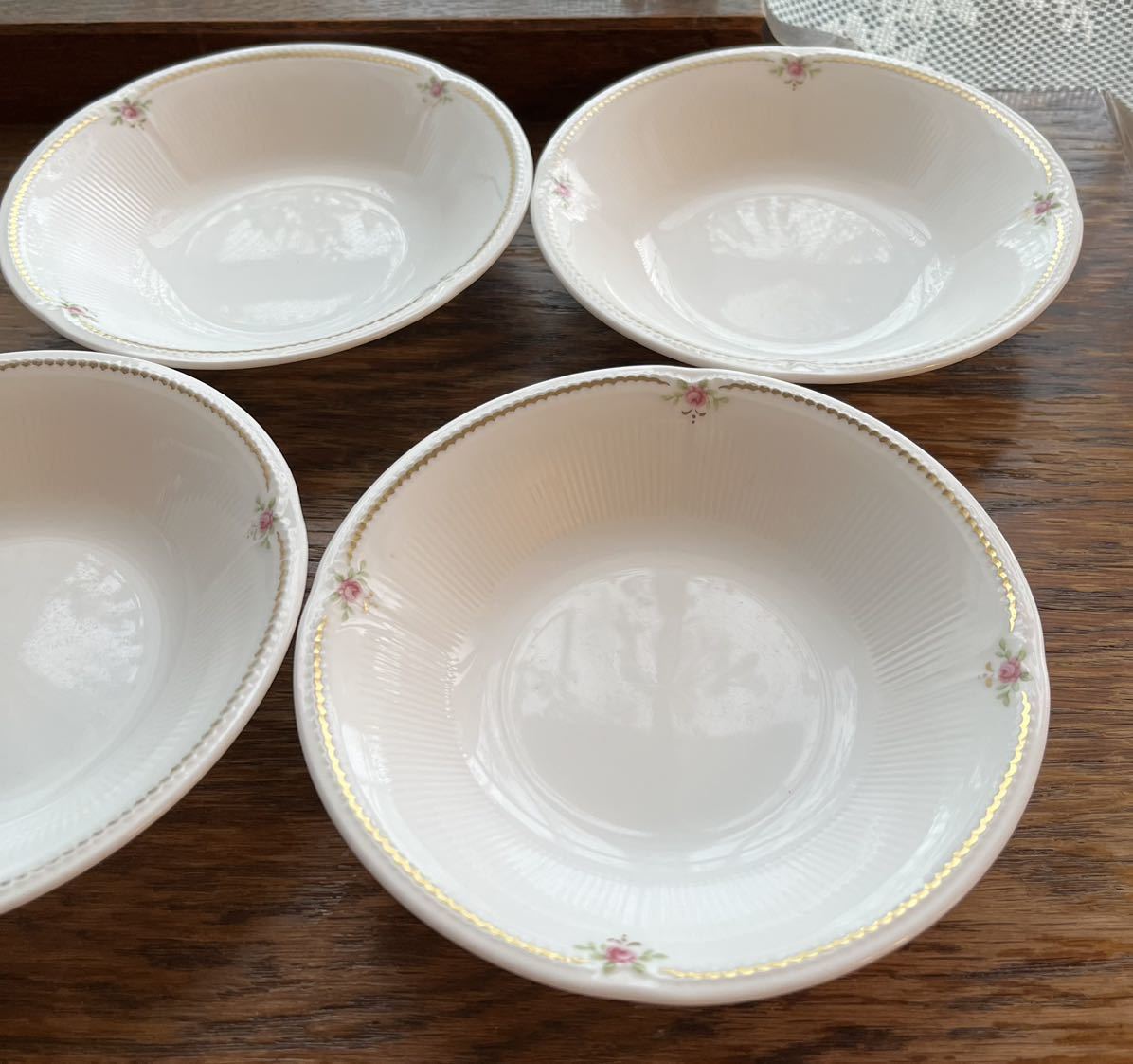 ニッコー 中鉢 サラダボウル デザートボウル クープ皿 金縁バラ 薔薇 平鉢 小鉢 取り鉢 4客 USED