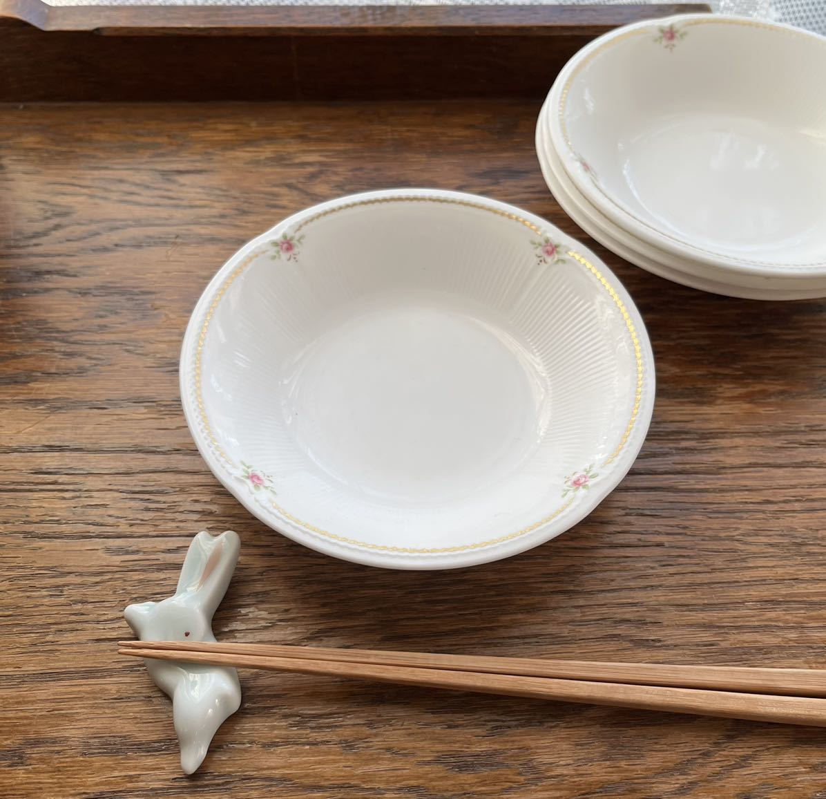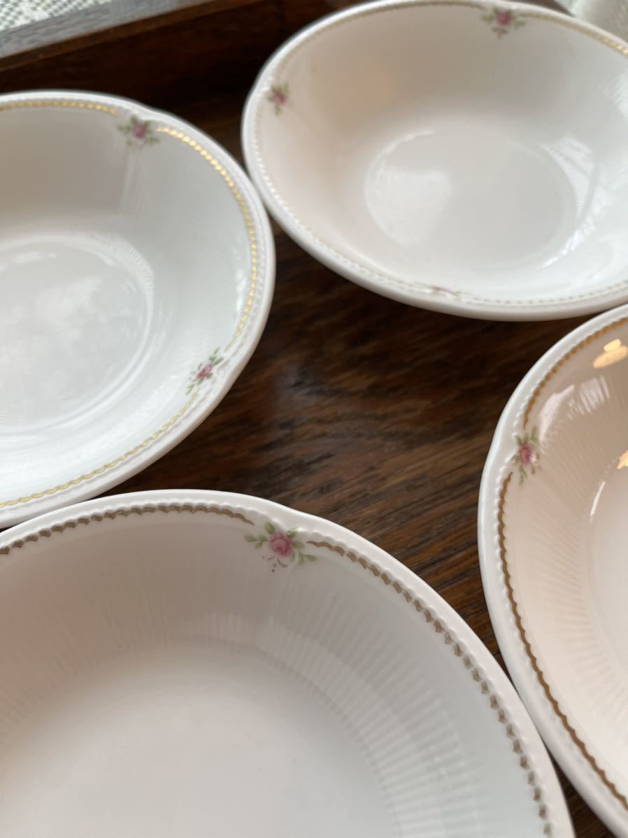 14.5cm の金縁とバラが描かれた白磁のボウル 4です