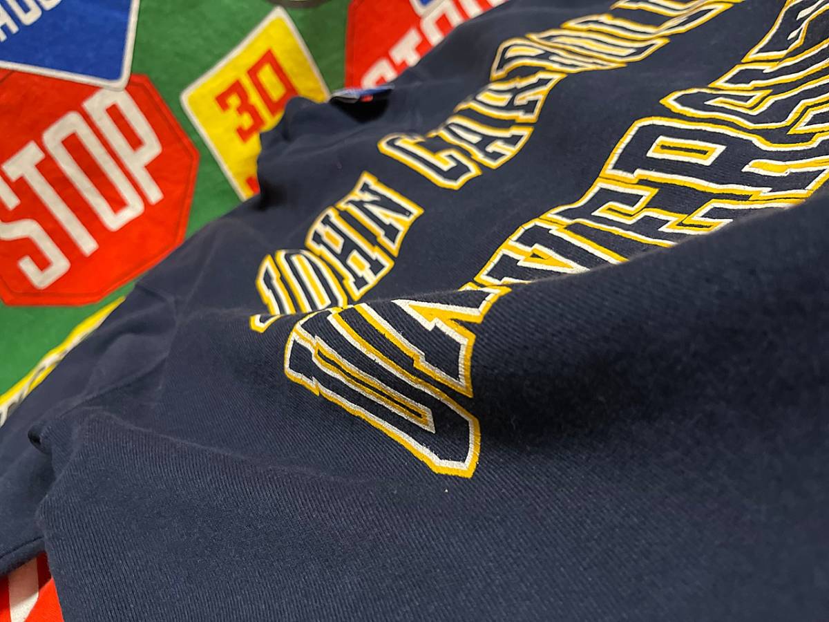 バランスの良い2列のカレッジプリントが◎な1枚で、これからのシーズンにもオススメな1990年代〜頃のビンテージスウェットシャツです。