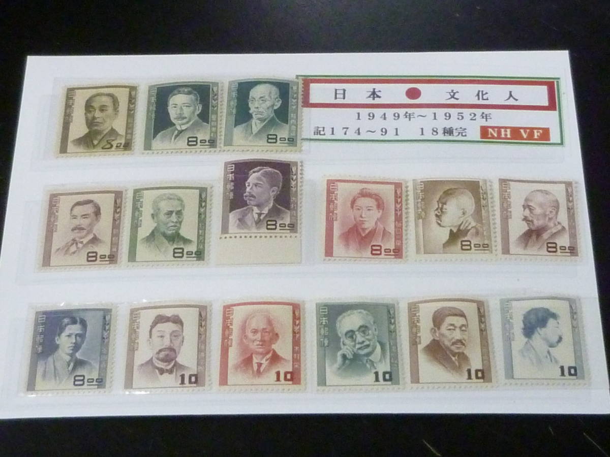 23 P №4 日本切手 1949-52年 文化人 18種完の内 記175-91 計15種 未使用NH・VF 【型価 23,900円】
