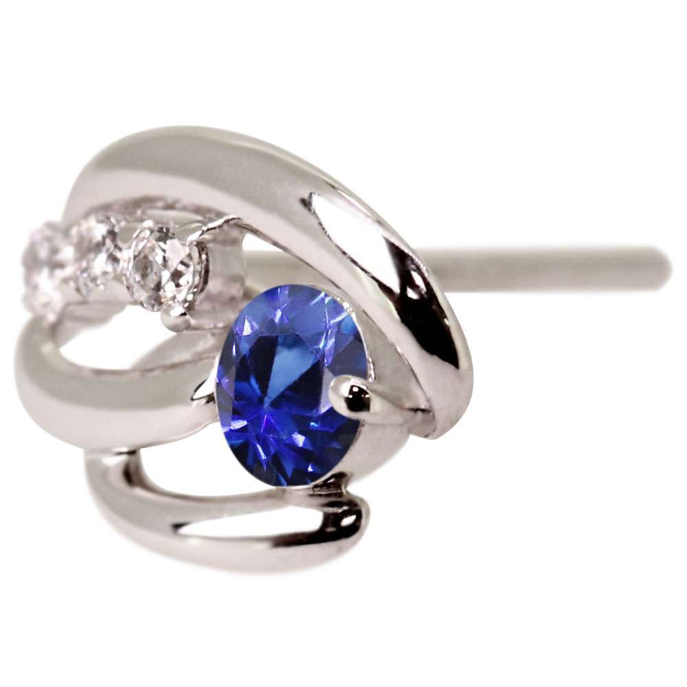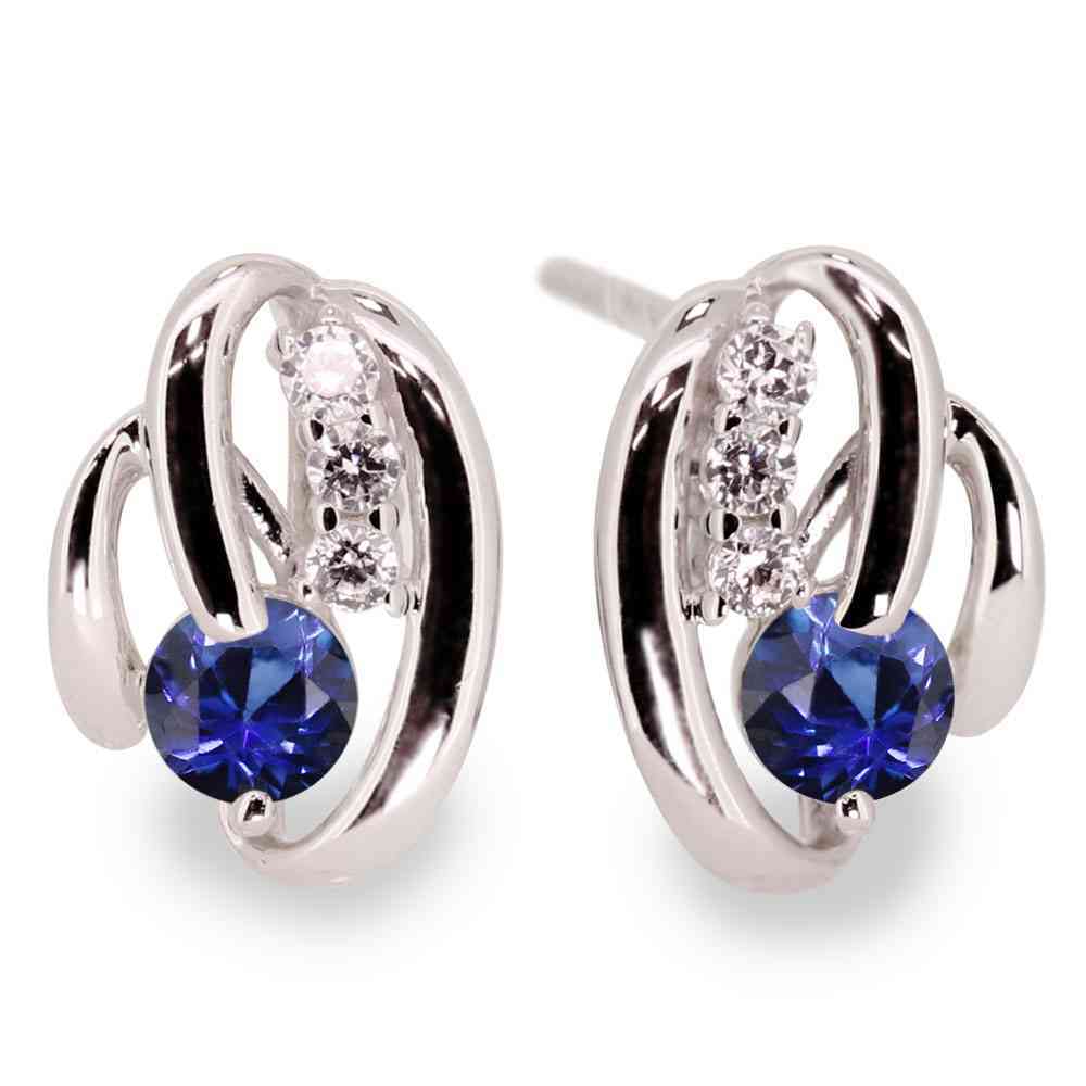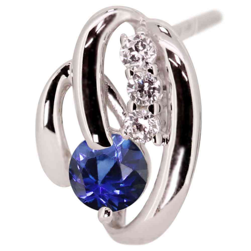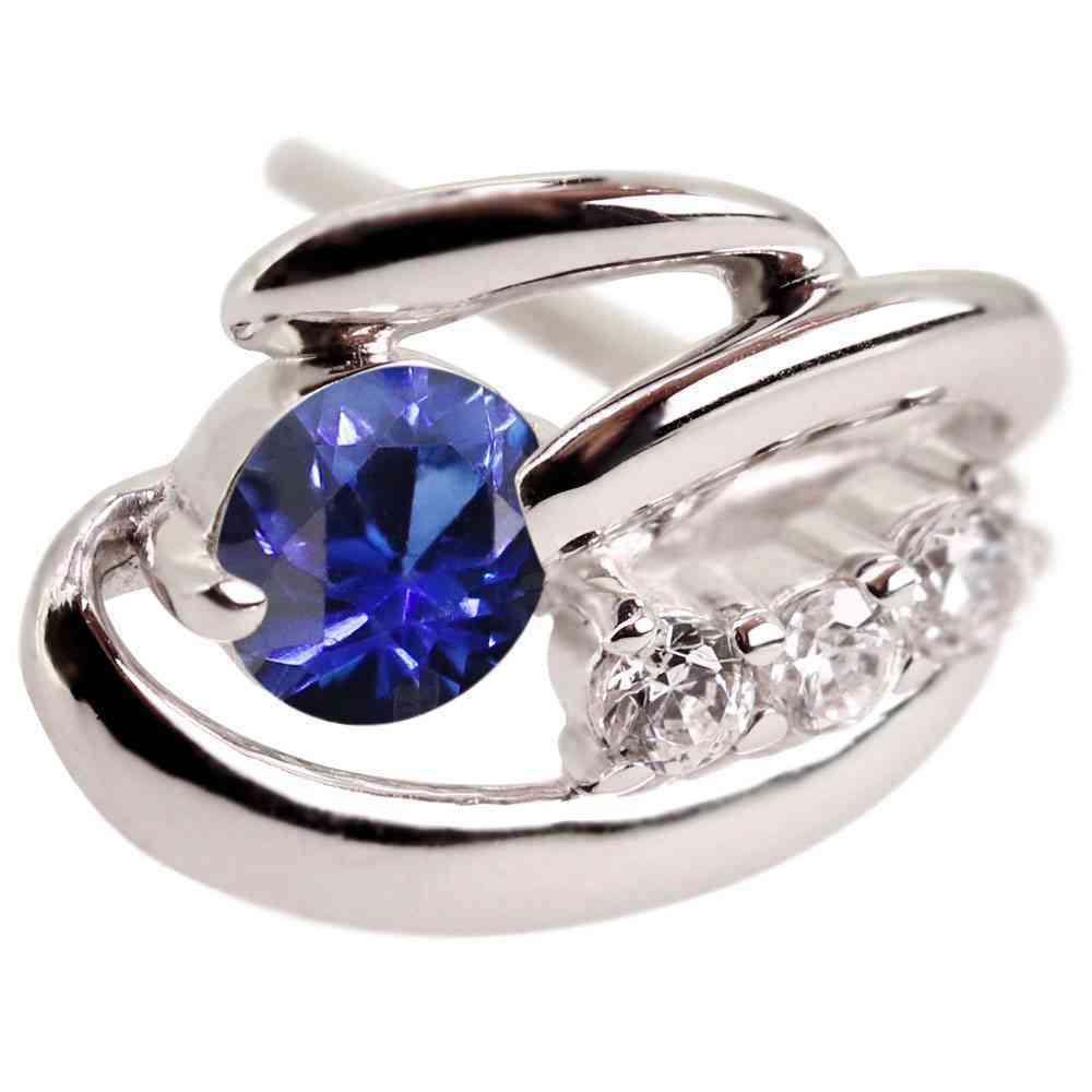 9月誕生石サファイアを使用したプラチナ製の、レディーススタッドピアスです。