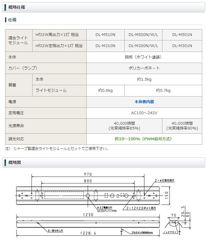 ・反射笠型プルスイッチ付 40形(1灯相当タイプ) DL-MU30PN