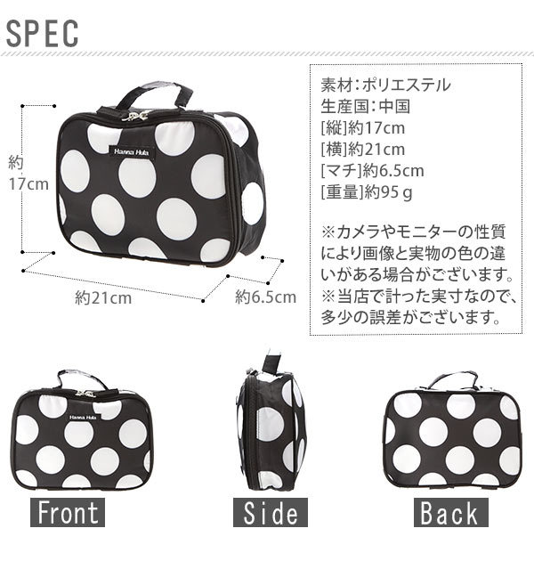 商品説明 | かさばるおむつとおしり拭きを、まとめて収納して持ち歩ける便利なおむつケースです。 水や汚れに強いはっ水加工で、お手入れが簡単です。※防水仕様ではありません。 中身の出し入れがしやすい大きく開くファスナー開閉です。 家庭用サイズのおしり拭きが入るポケット付き。 おむつやお着替えを入れてコンパクトになります。 とても軽く小物入れとして携帯に便利です。 おしゃれでかわいい色柄で、出産準備品としても、コスメポーチとしても使える便利なマルチポーチです。 |