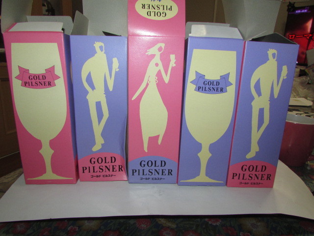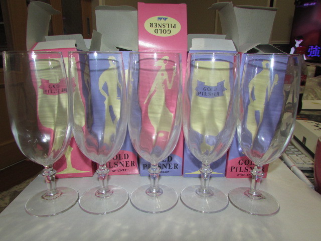 ( 酒屋・蔵出し)(古いアサヒビ-ル景品・捻じり模様ワイングラス・未使用・5客)NO2・ 昭和レトロ・貴重・珍品