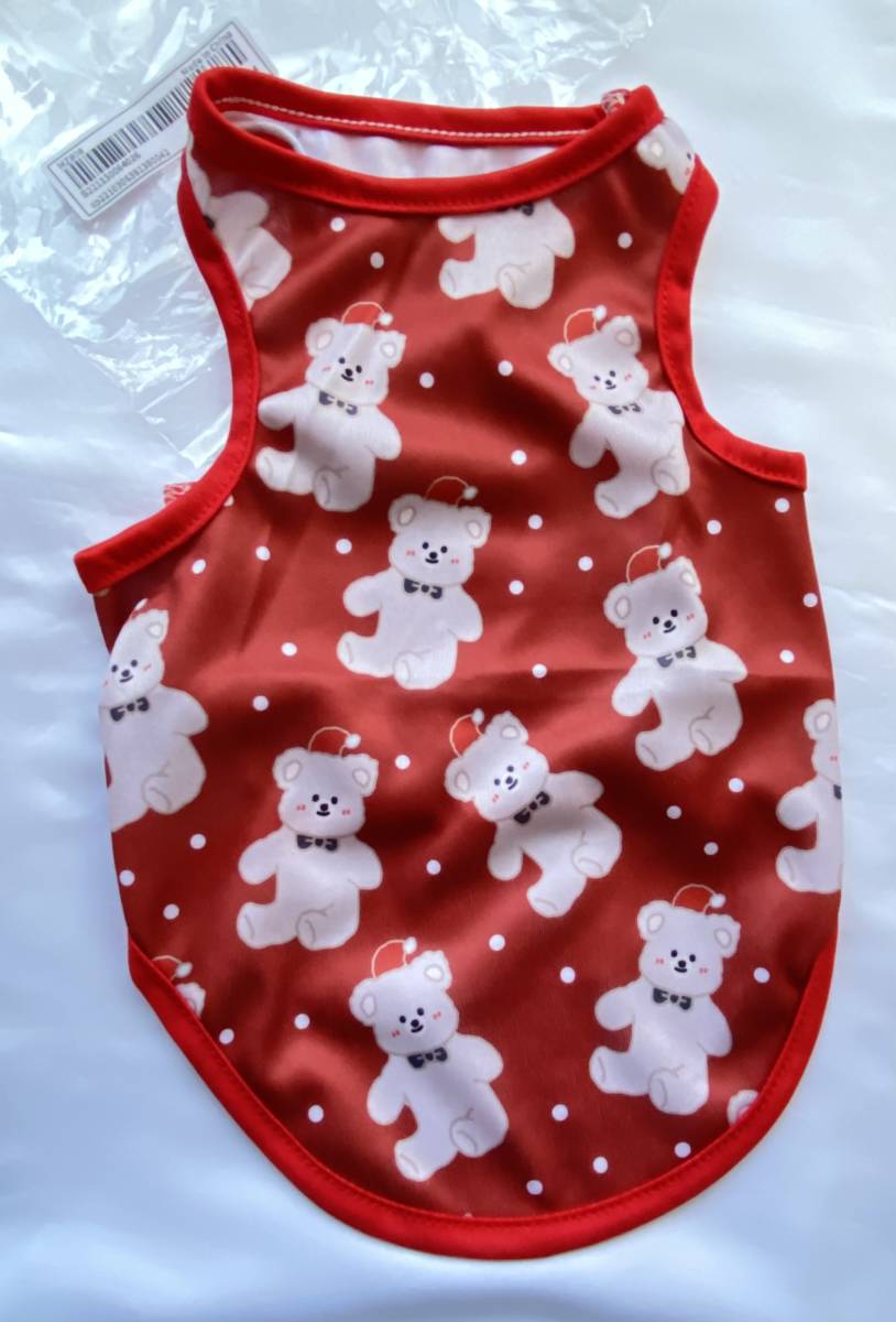【新品】【送料込み】犬猫 ペットウェア  熊プリント柄タンクトップ 子猫・小型犬用 レッド