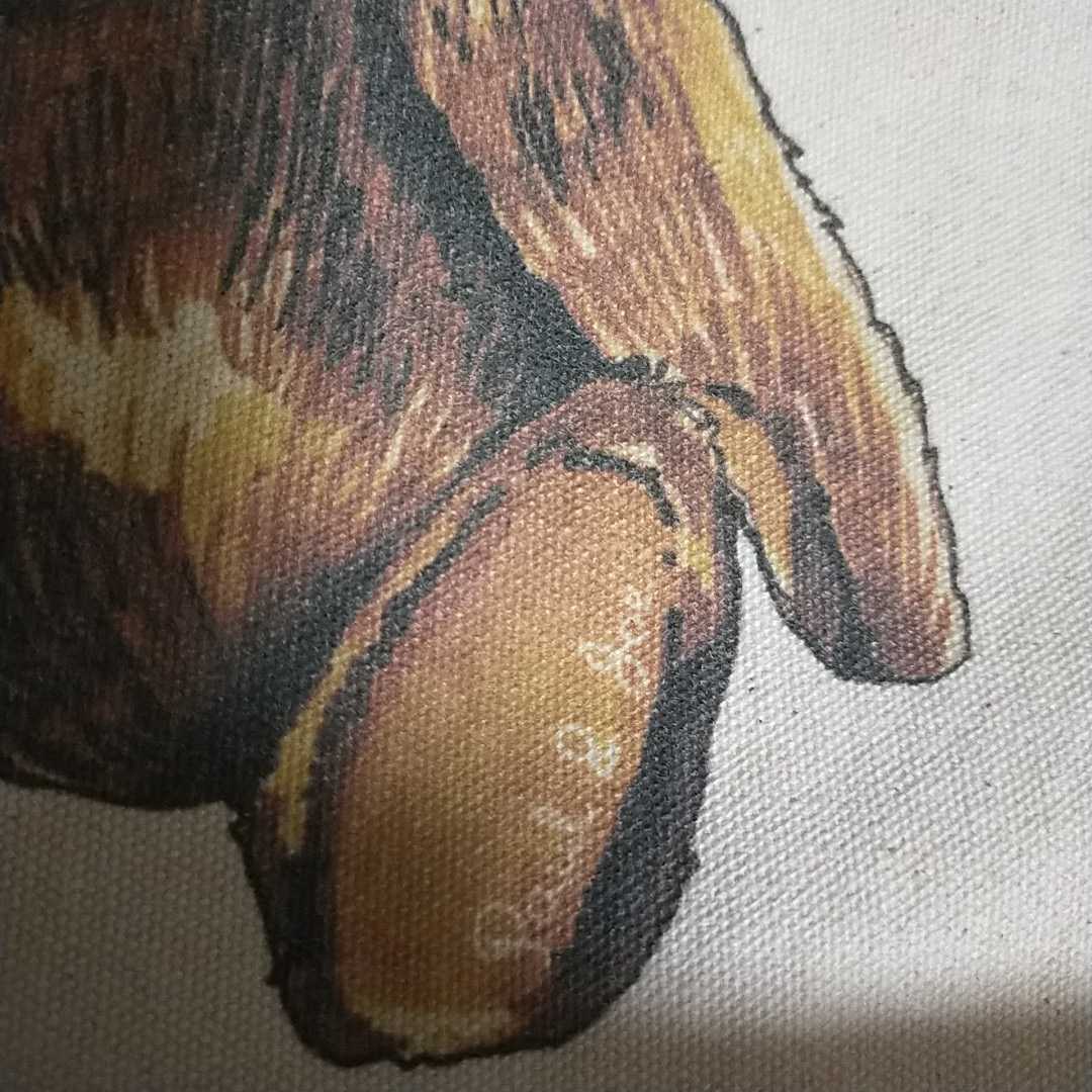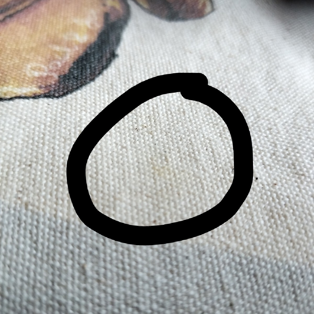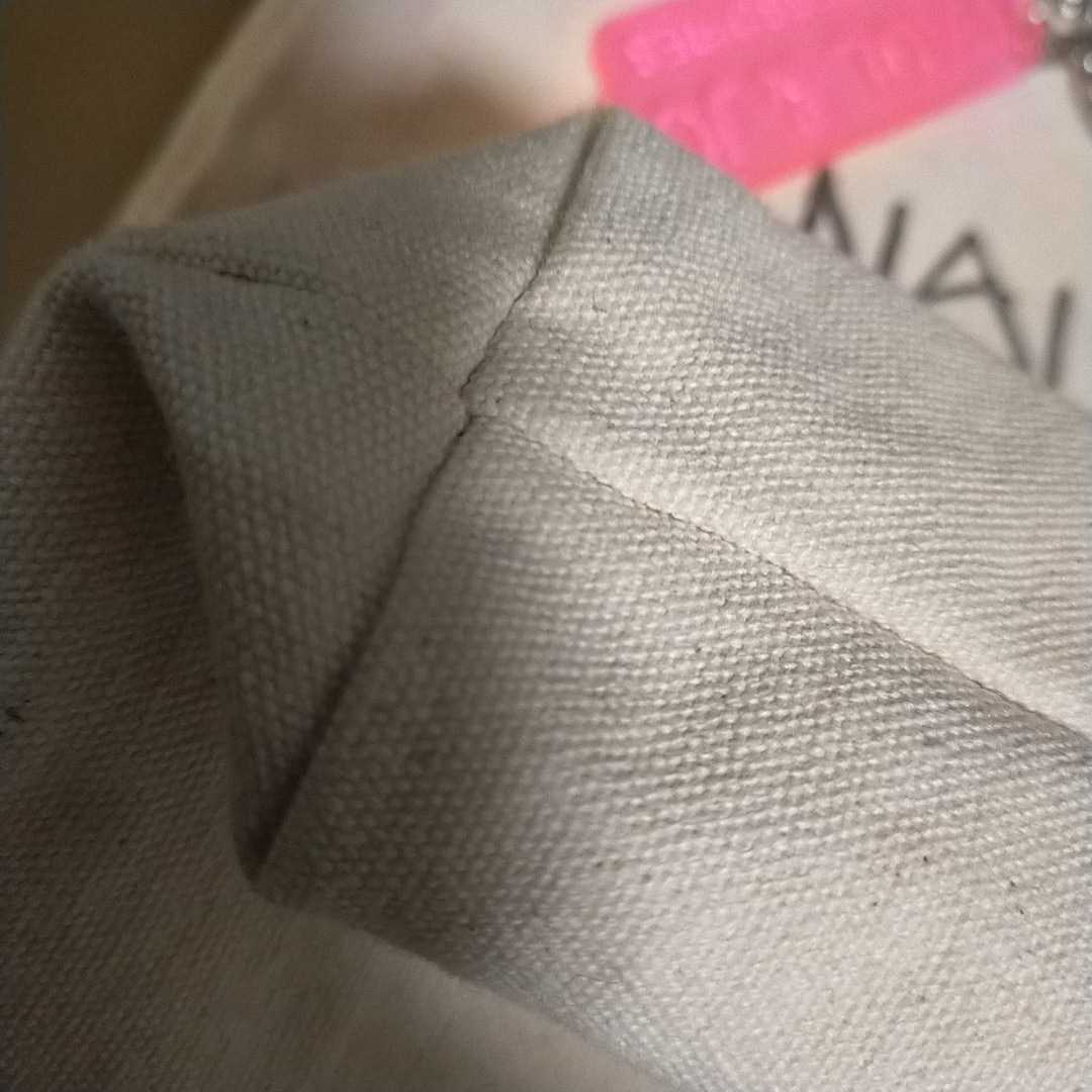 元々が漂白されていない生成りの生地ですので、全体の色合いのばらつきや植物の破片である黒い点が混ざっているのが特徴となります。