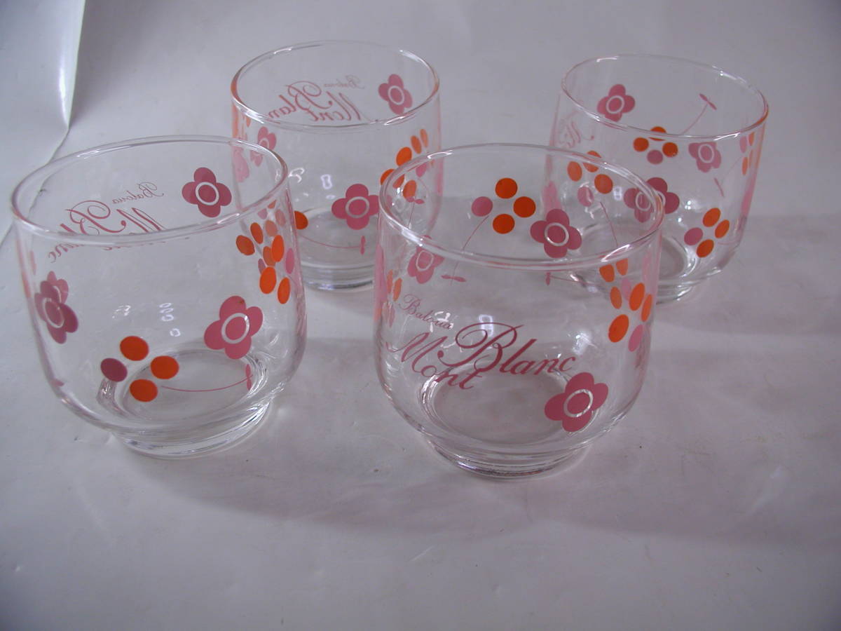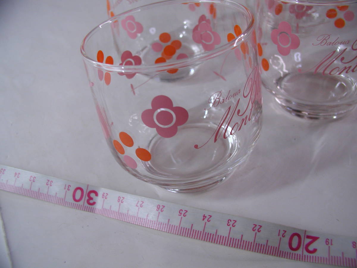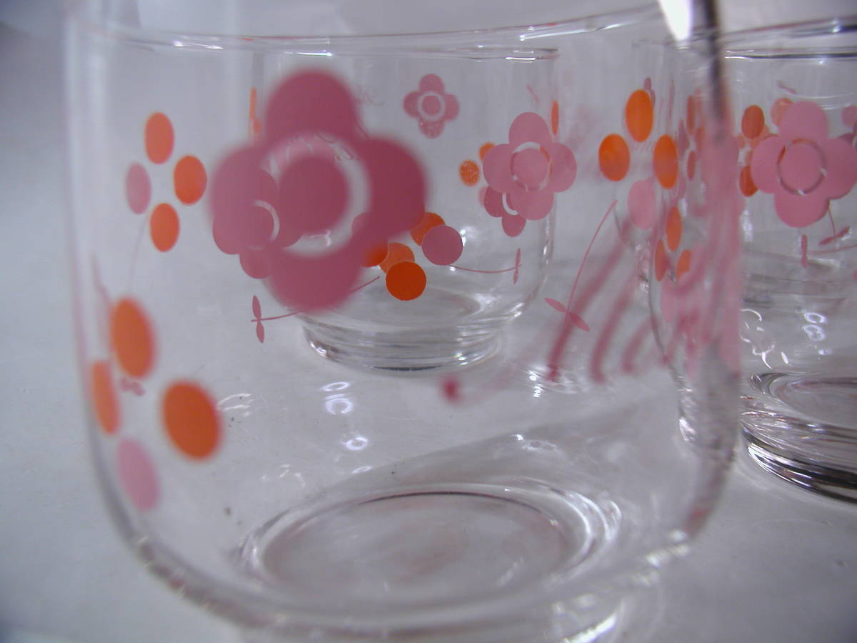 レトロ▲ガラスコップ4個セット▲花柄▲ピンク▲オレンジ