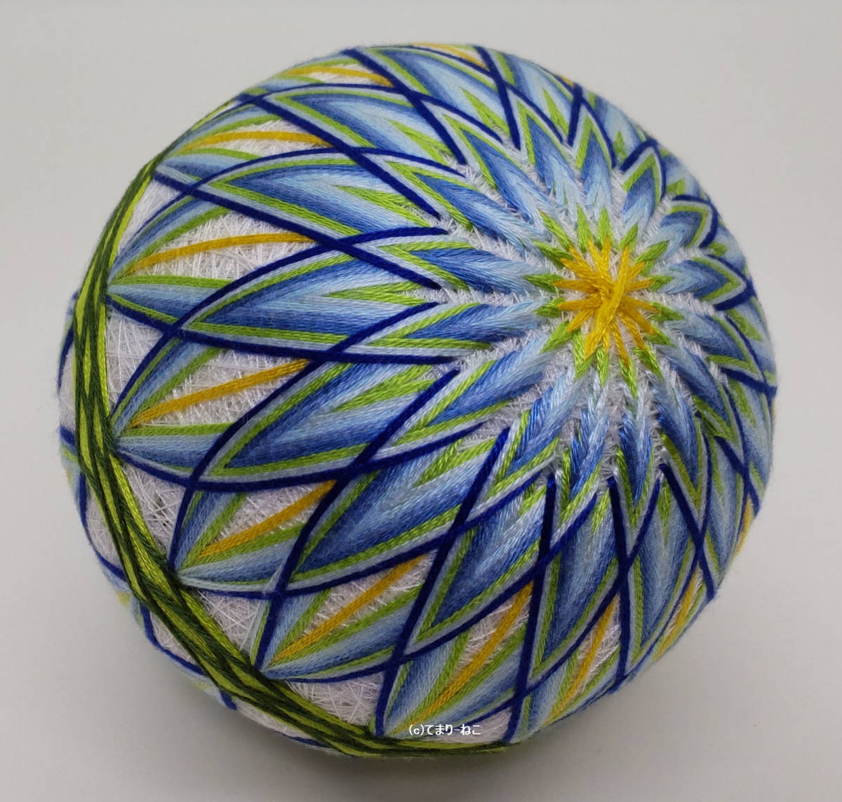 私の手作り品です。 最近作られる多くのてまりが、スチロールボールの土台になってしまいました。 私のてまりは昔ながらに土台の芯にビニール袋に入れた籾殻を使い 毛糸や、ミシン糸で形を整えて 糸を巻いたりステッチをしたりして作品を作っています。 この作品はバウンドしません。 飾り物として模様等を楽しむのが一般的ですが、 手の中で転がして手触りなどを楽しんだり、 室内で宙に投げ模様の変化を楽しんでください。 籾殻は電子レンジで加熱殺菌していますので 内部からの虫の発生はありません。 ですが、天然素材のため虫食いの可能性もあります。 防虫剤の使用をお勧めします。 もみ殻の匂い消しをかねて香木を刻んだものが入っています。 お線香のような匂いがします。 気になる方は風通しの良い日の当たらない場所に置いてください。 |