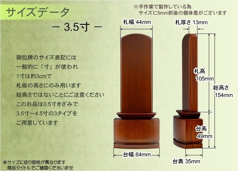 人気位牌【タモ無垢材使用の天然木位牌:春日3.5寸 シックブラウン】仏壇・位牌 送料無料