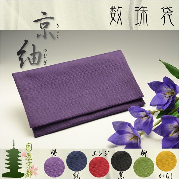 国産京都純正【数珠袋(大):京紬(きょうつむぎ)紫】数珠・念珠・数珠入れ・数珠袋 ネコポス送料無料