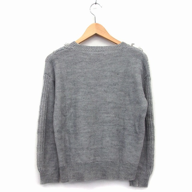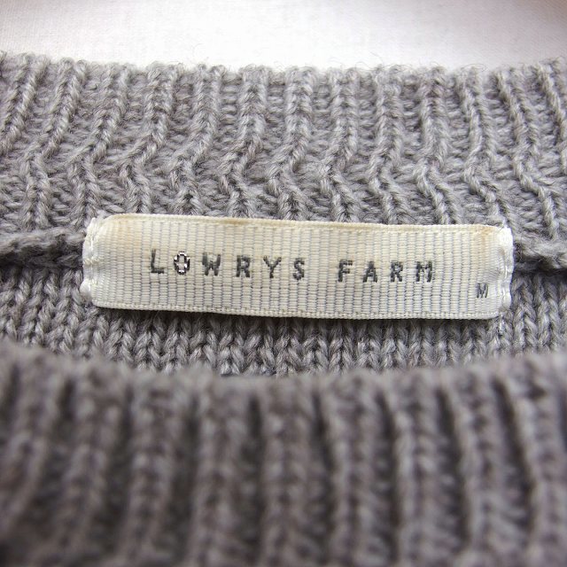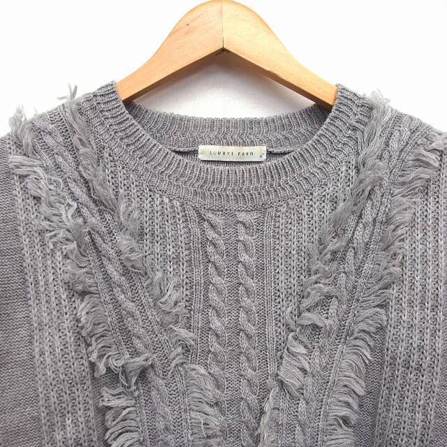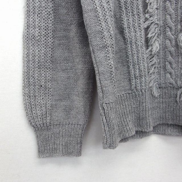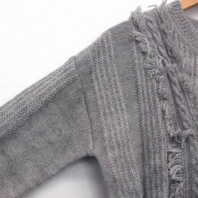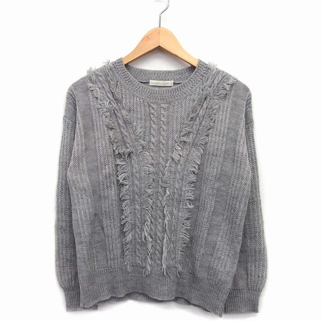ローリーズファーム LOWRYS FARM セーター ニット 長袖 丸首 ケーブル編み フリンジ 切替リブ ウール混 M グレー 灰 /HT25 レディース