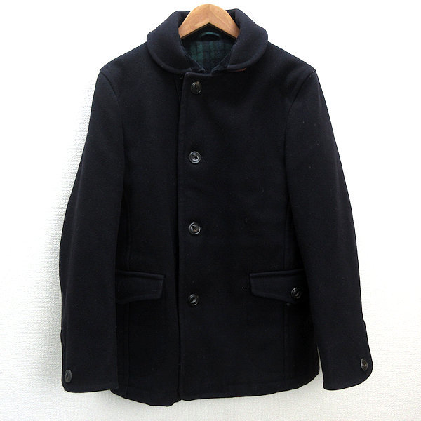k■グロスター/gloster ラウンドカラー シングルボタンウールコート【L】紺/MENS■25【中古】