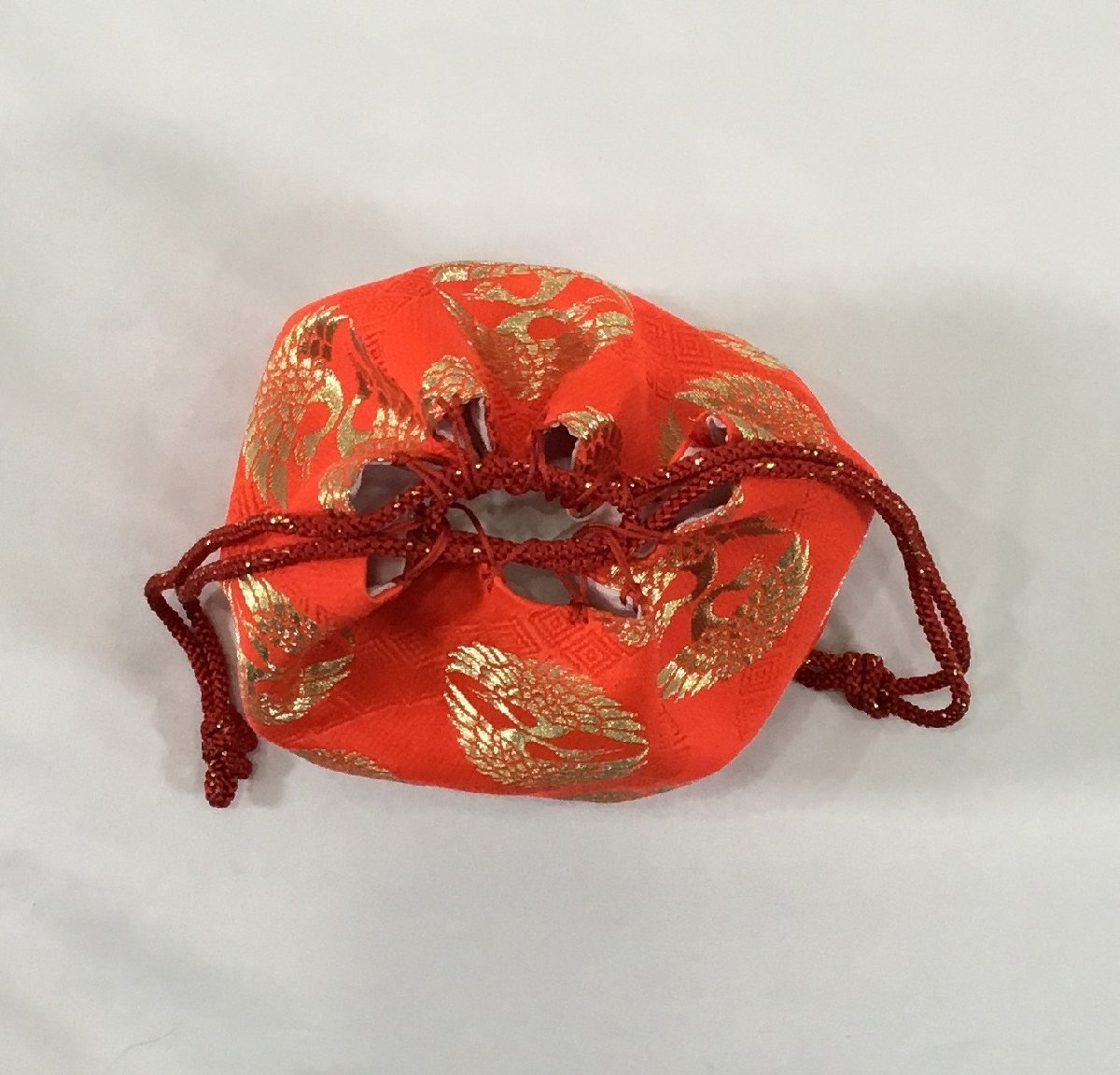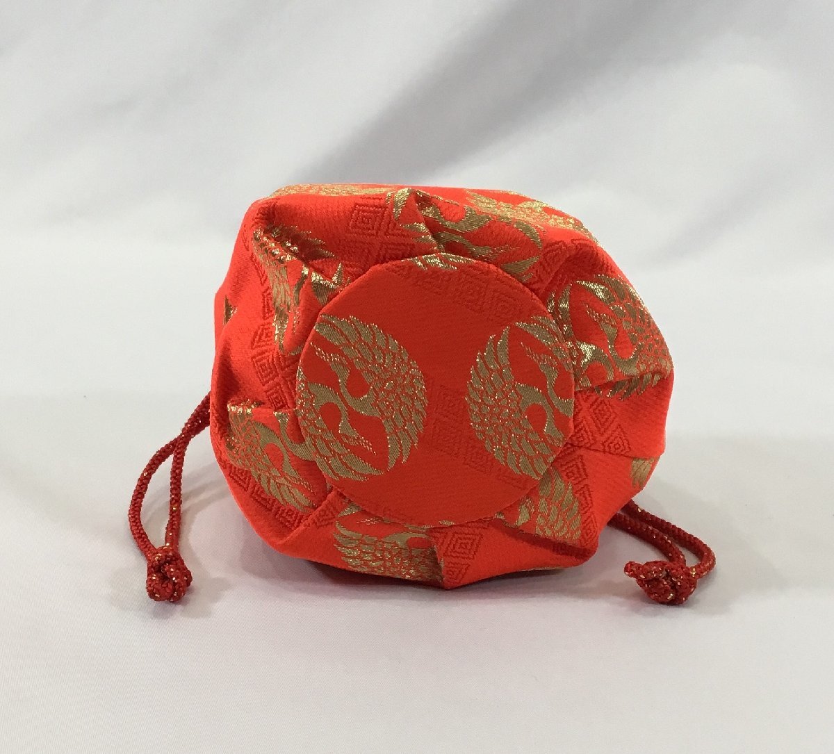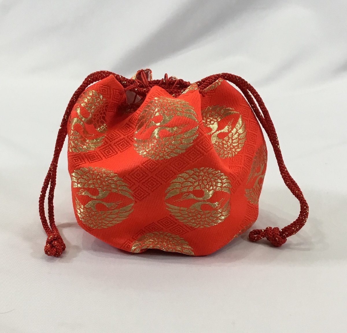 | きんちゃく/美品/赤に向鶴文【ゆずりは】6375 |