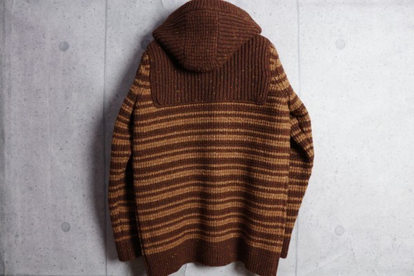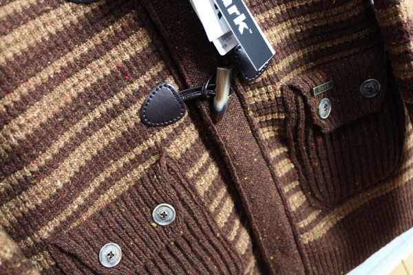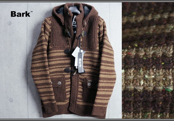 新品 Bark / バーク 伊勢丹限定 ボーダー柄 ショート ダッフル 羊毛 ニット コート XS(日本サイズでS程) 茶 定価10万円程
