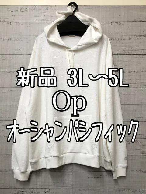 新品☆3L~5L♪白系♪Opオーシャンパシフィック綿混パーカー♪☆e888