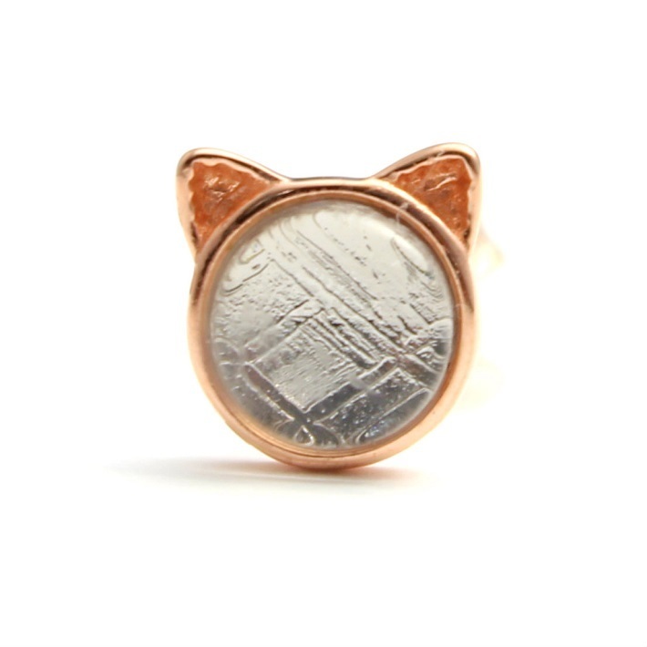 古来よりご神体として祭られてきたギベオン隕石のかわいい猫型シルバーピアス。