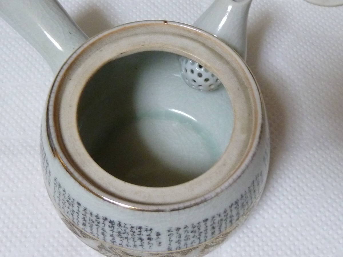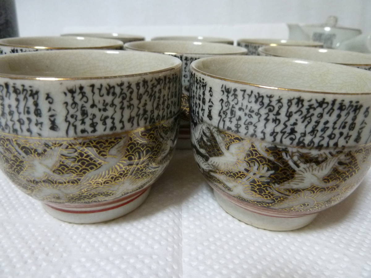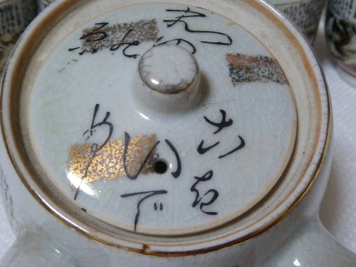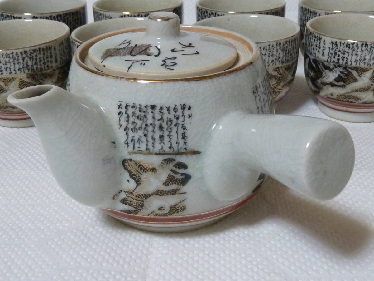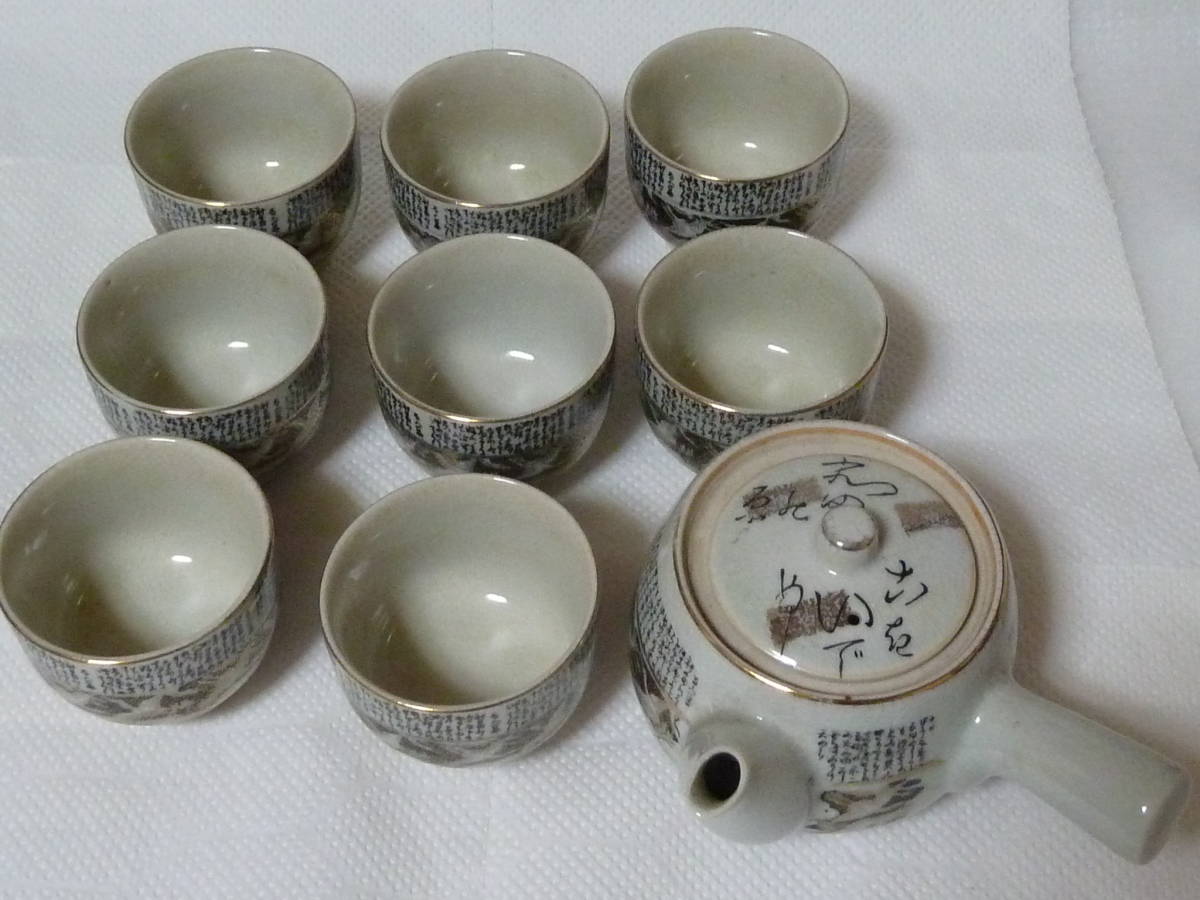 急須は横手取っ手で胴穴茶こしタイプです サイズ(約) 横手急須×1:横幅 15cm×奥行 13cm×高さ 8cm 湯呑×8客:口径 7.5cm×高さ 6cm 状態 ・使用によるスレキズ、汚れあります。 ・金彩のハゲあります。 付属品 ・画像1枚目に写っている物が全てです。 ・箱、栞などはありません。 | ||||