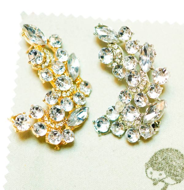 イヤカフ リーフ 葉っぱ 片耳 小型 金 銀 ホワイト【2個】ゴールド ストーン