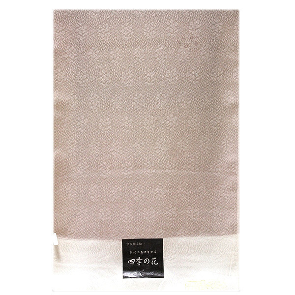 [和楽屋] ■「京友禅-伝統工芸伊勢型写」 四季の花 菱文様 薄い灰梅色 反物 正絹 小紋■